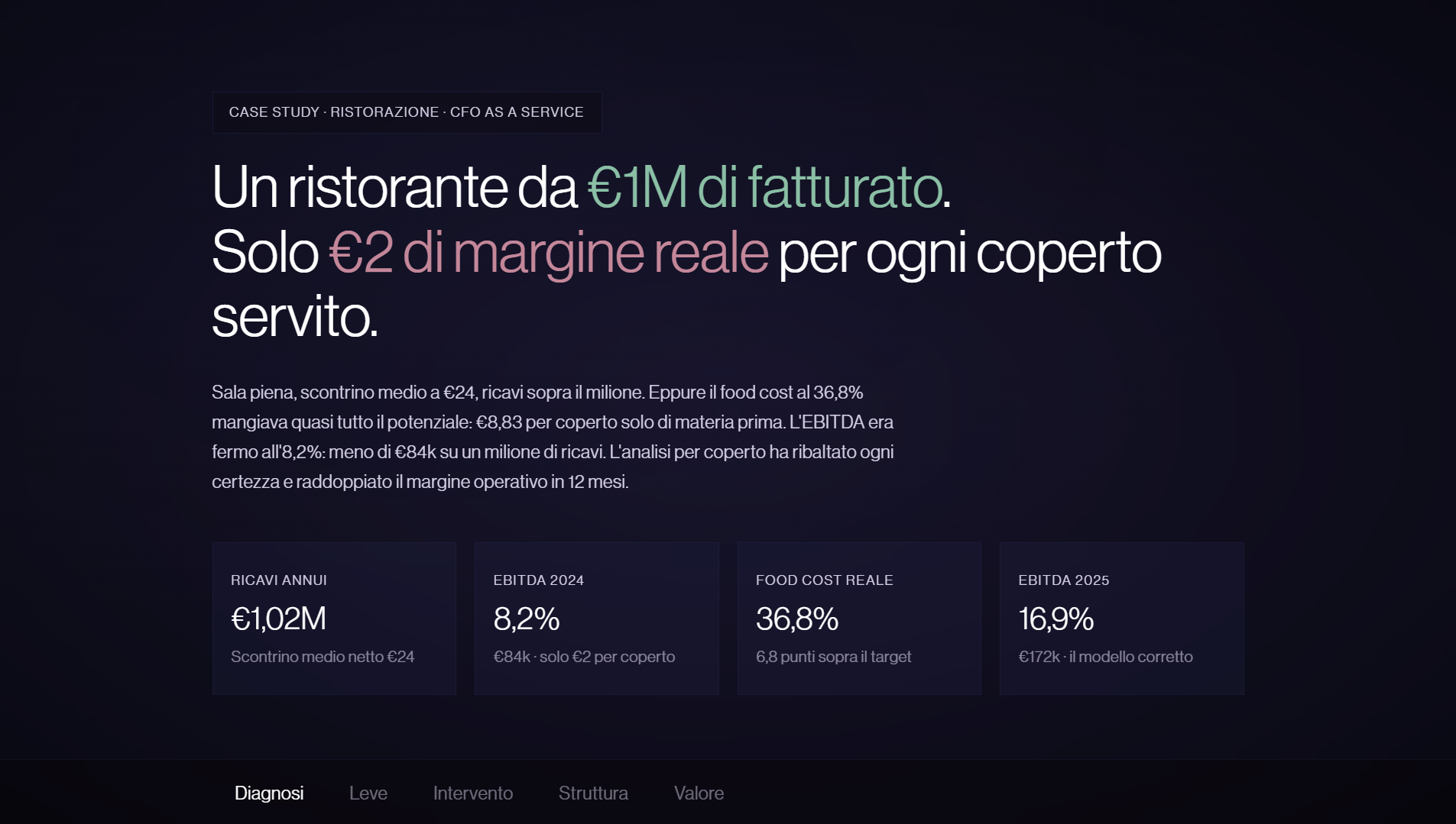 La maggior parte dei ristoranti legge i numeri troppo tardi, troppo aggregati, o non li legge affatto. Il fatturato cresce, la sala è piena, eppure a fine anno il margine non giustifica il rischio. Il problema non è quasi mai il mercato — è il modello: food cost fuori target, break even sconosciuto, pricing basato sull'intuito.